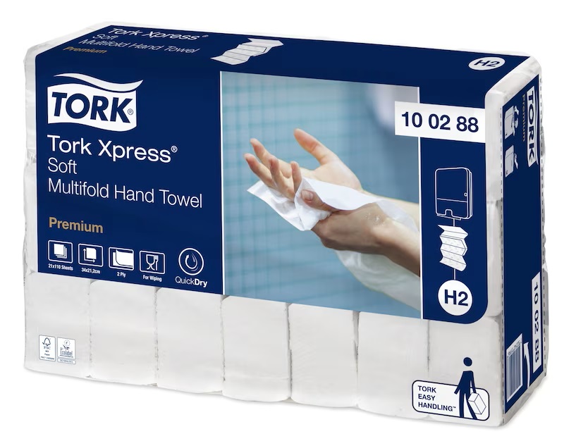Asigurați uscarea mâinilor și un grad ridicat de confort clienților dumneavoastră cu prosoapele pentru mâini Tork Xpress Multifold Premium Delicat, foarte moi și mari, care sunt blânde cu mâinile și dau o senzație plăcută la atingere. Aceste prosoape sunt adecvate pentru dozatorul de prosoape pentru mâini Tork Xpress Multifold, pentru toaletele cu trafic mediu. Acesta se încadrează în spații mici și asigură atât confortul, cât și igiena oaspeților dumneavoastră.