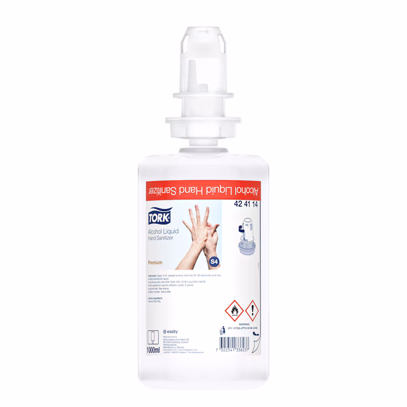 Preveniți răspândirea infecțiilor cu Dezinfectantul lichid pentru mâini Tork, pe bază de alcool, foarte eficient, cu 80% masă alcool denaturat. Formulă specială pentru utilizare frecventă, cu acțiune dovedită a fi sigură pentru piele, fără a lăsa reziduuri lipicioase. Este ideal pentru domeniul medical și îndeplinește chiar și cerințele pentru spațiile de spălare și echipare sterilă. Potrivit pentru toate dozatoarele pentru săpun Tork (S4).