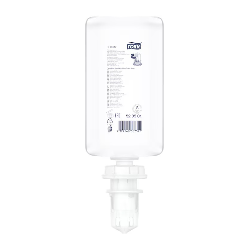 Asigurați îngrijire pentru pielea normală și uscată pentru spălarea zilnică a mâinilor. Tork săpun spumă cu parfum delicat are un miros proaspăt și ingrediente hidratante și hrănitoare, care formează o spumă cremoasă și delicată pentru o spălare blândă a mâinilor. Adecvat pentru dozatoarele de săpun și dezinfectant Tork, certificat drept ușor de utilizat și care asigură igiena mâinilor adecvată pentru toți utilizatorii.