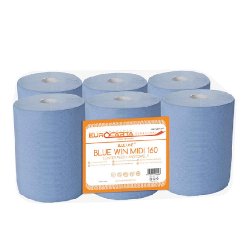 Rola hartie prosop, 2 straturi, celuloza albastra, gofrata, laminate si portionata. Cu proprietati excelente de absorbtie.